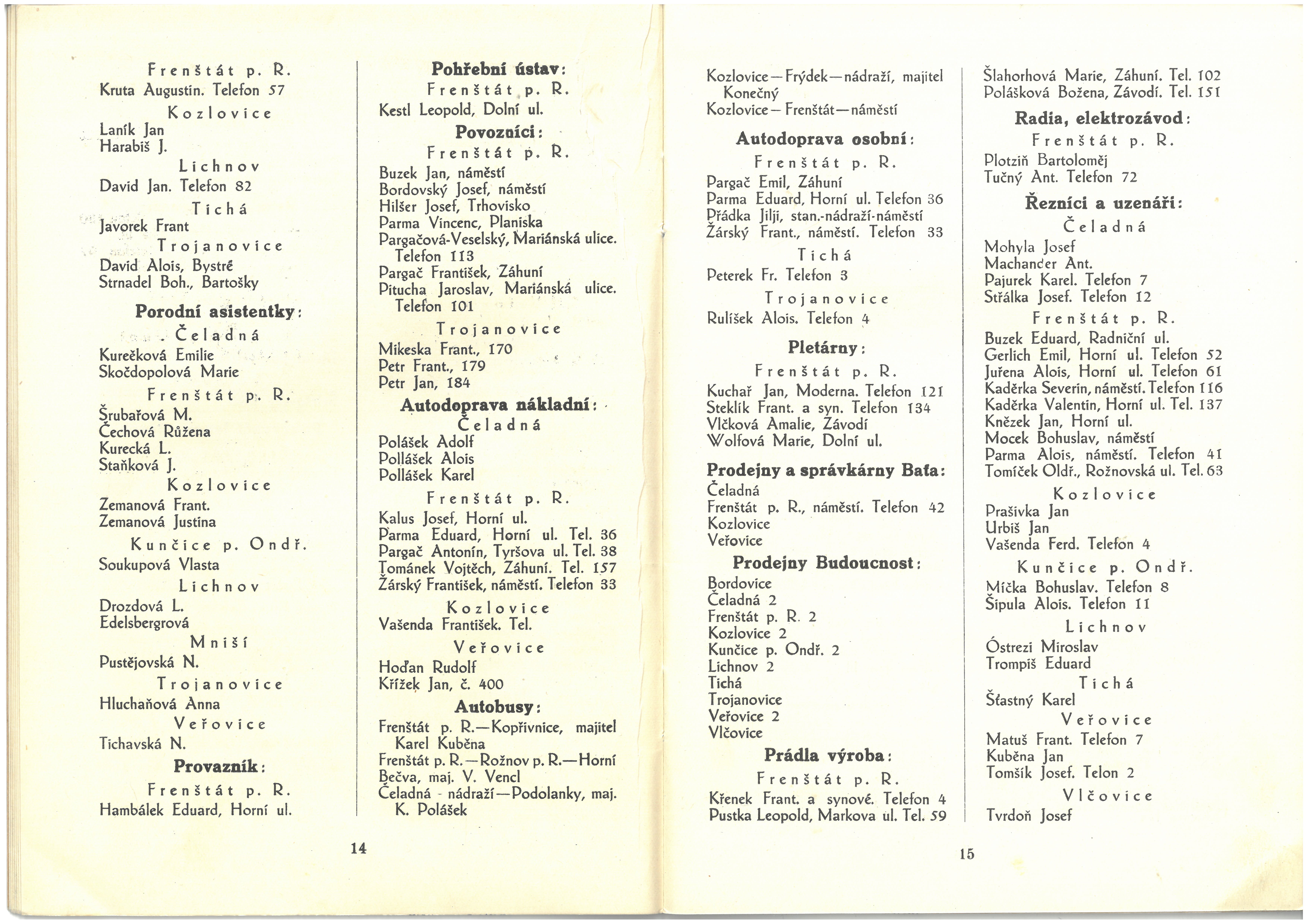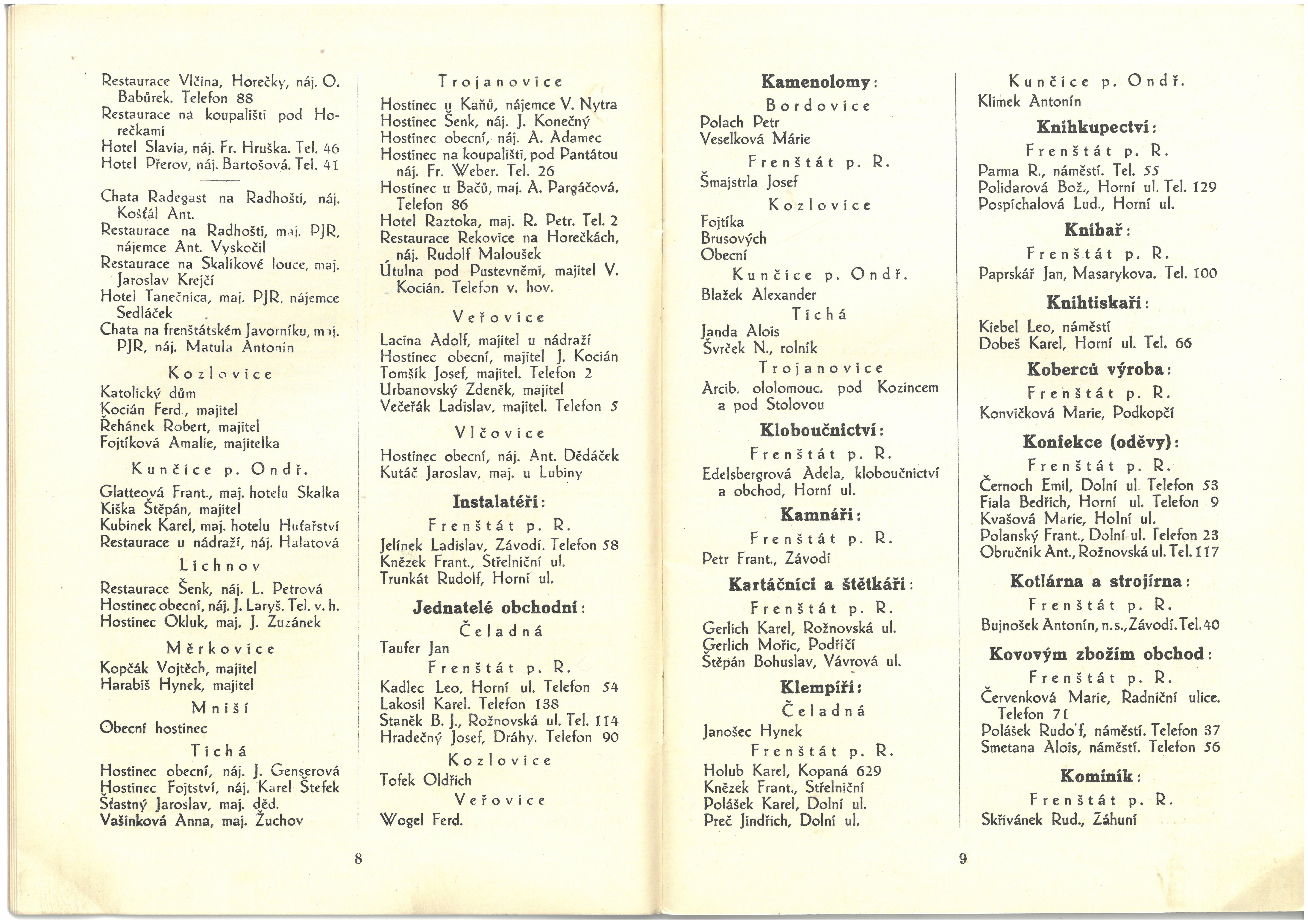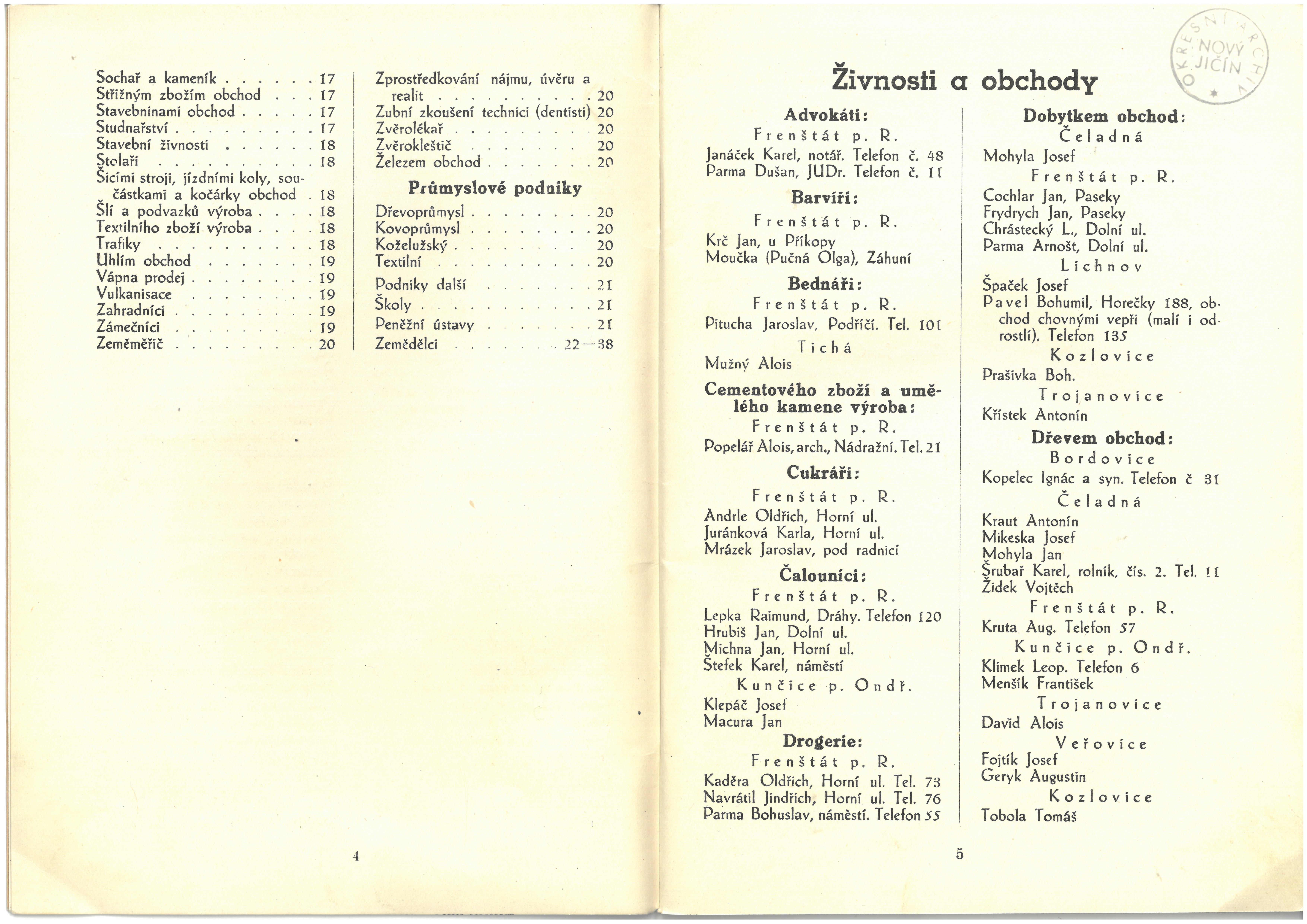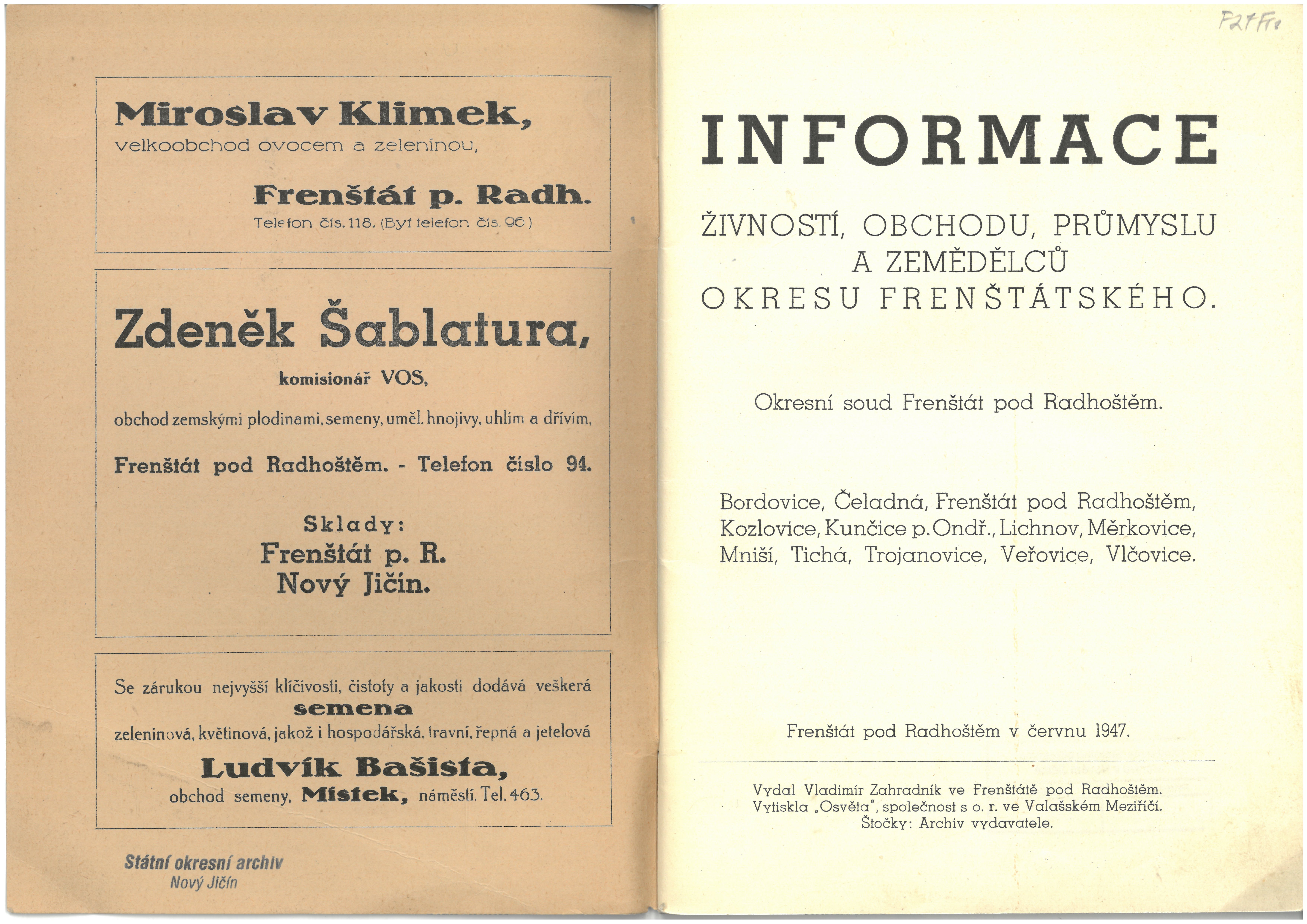 Informace živností, obchodu, průmyslu a zemědělců okresu frenštátského