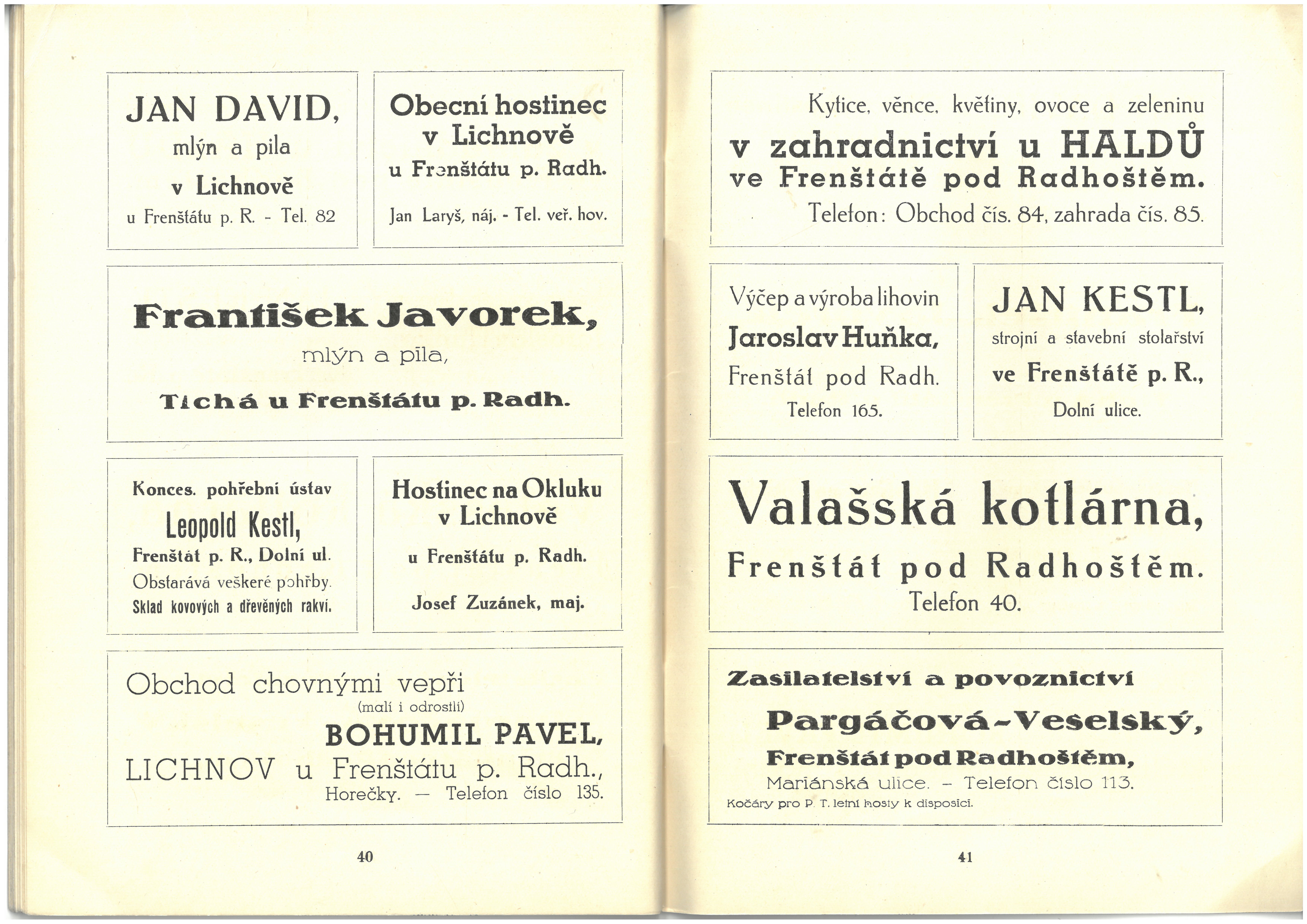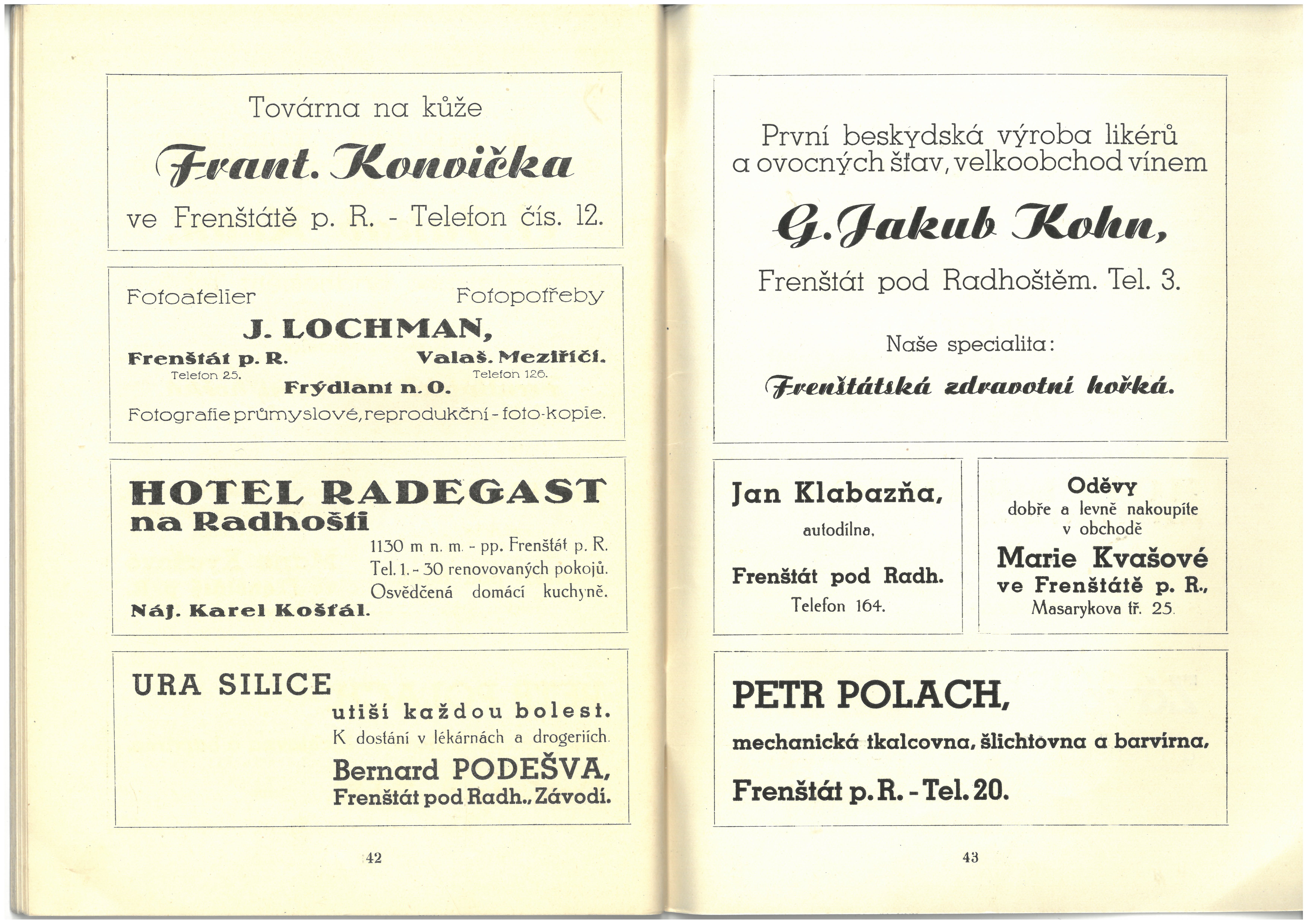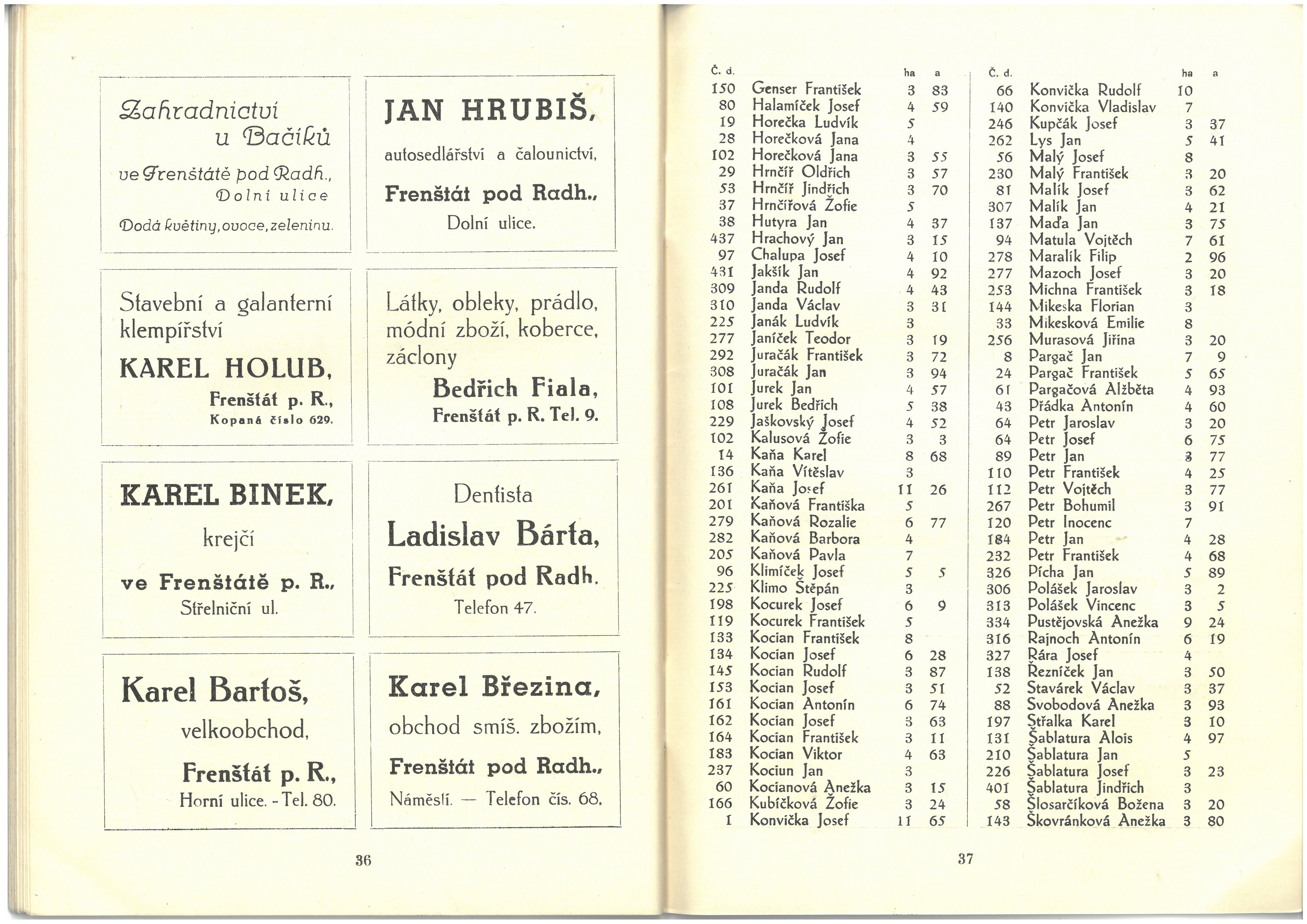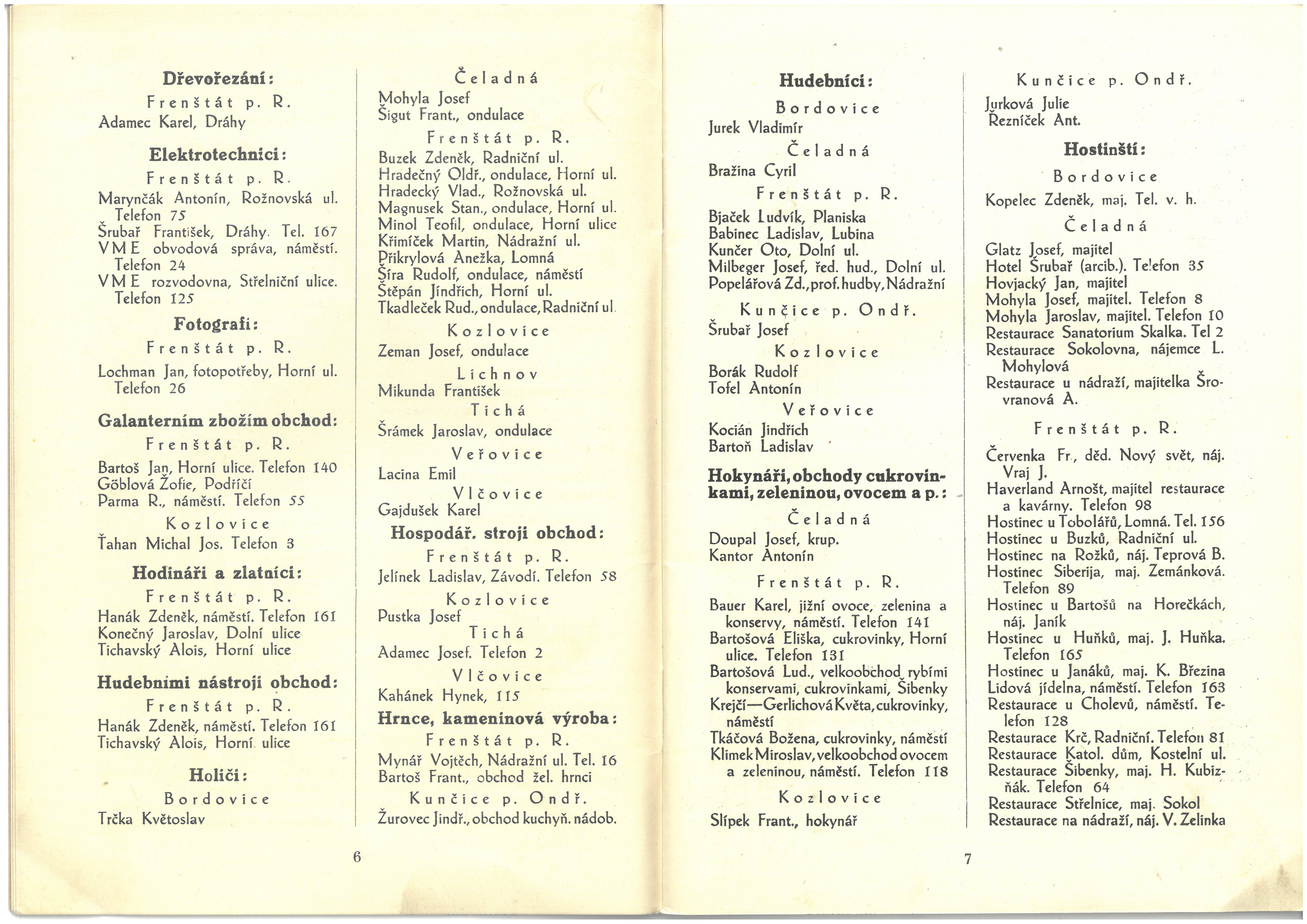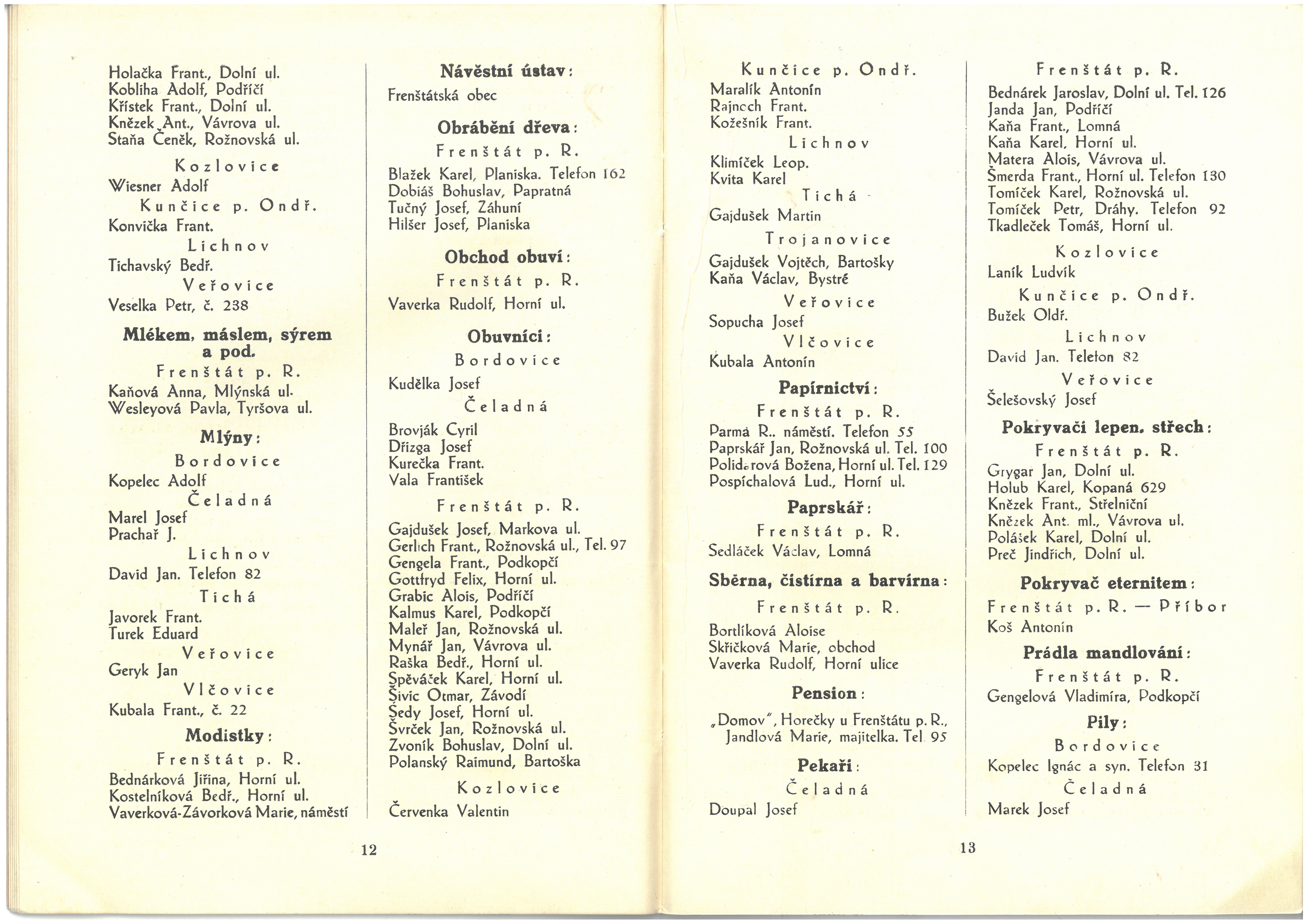 Informace živností, obchodu, průmyslu a zemědělců okresu frenštátského