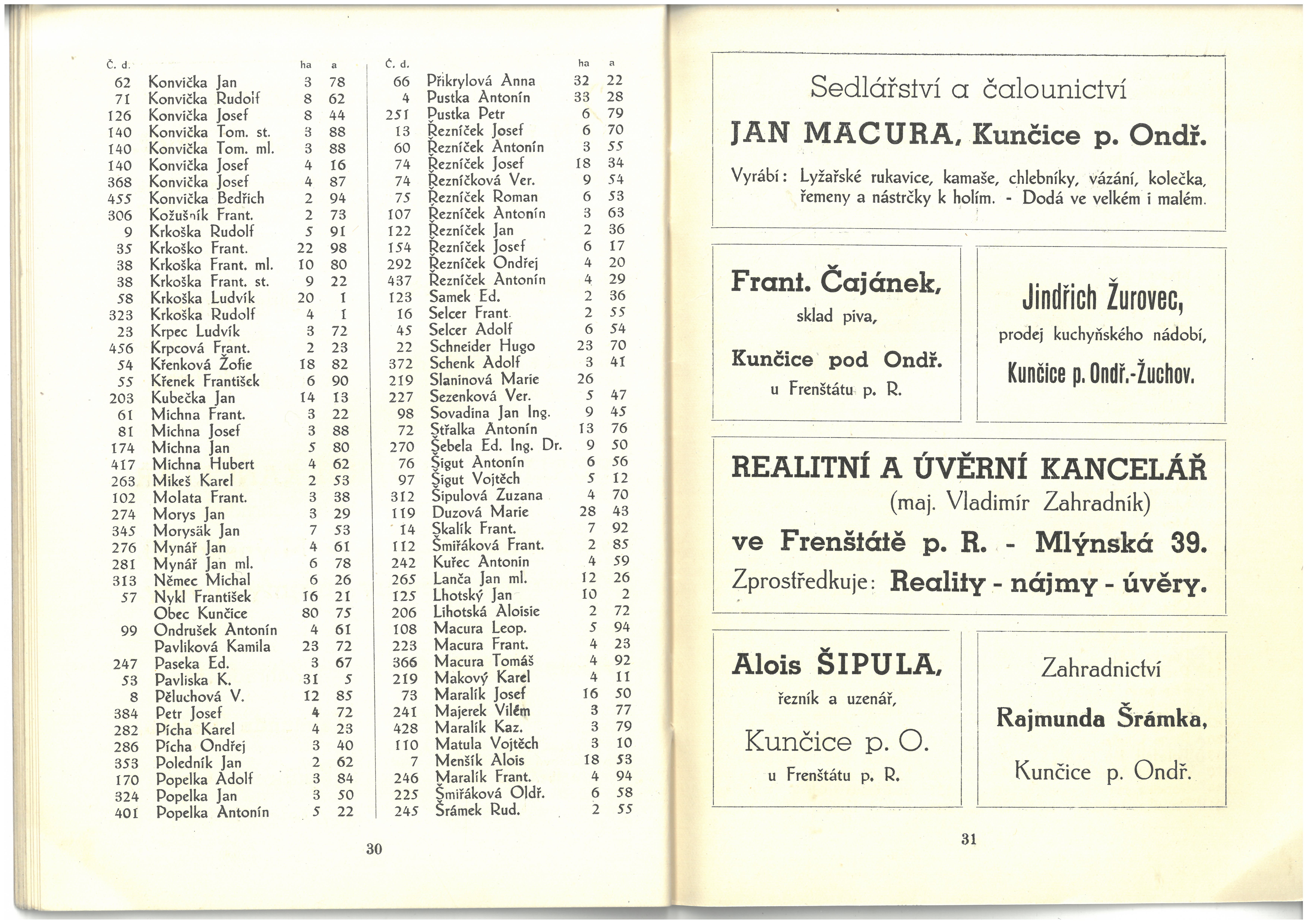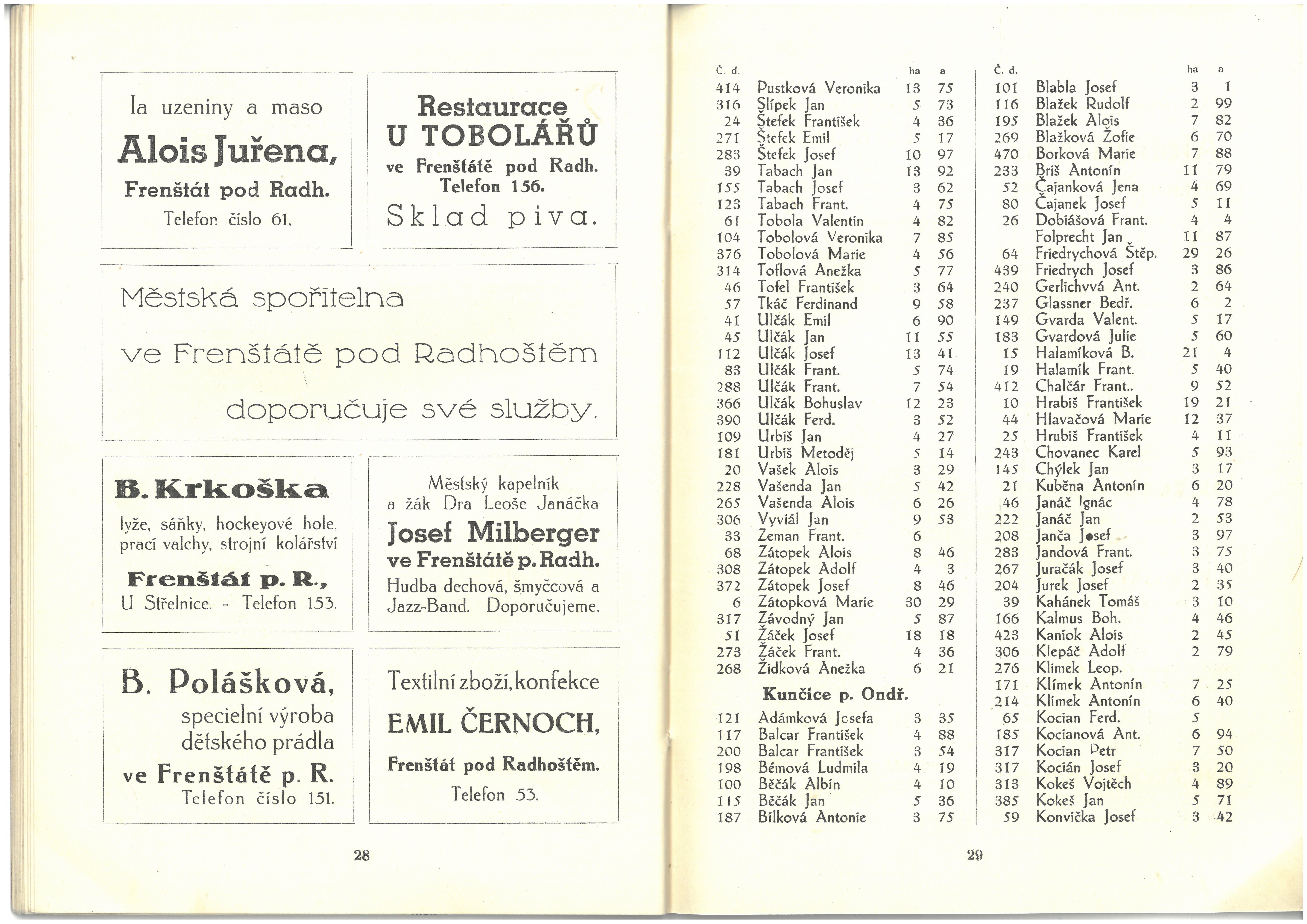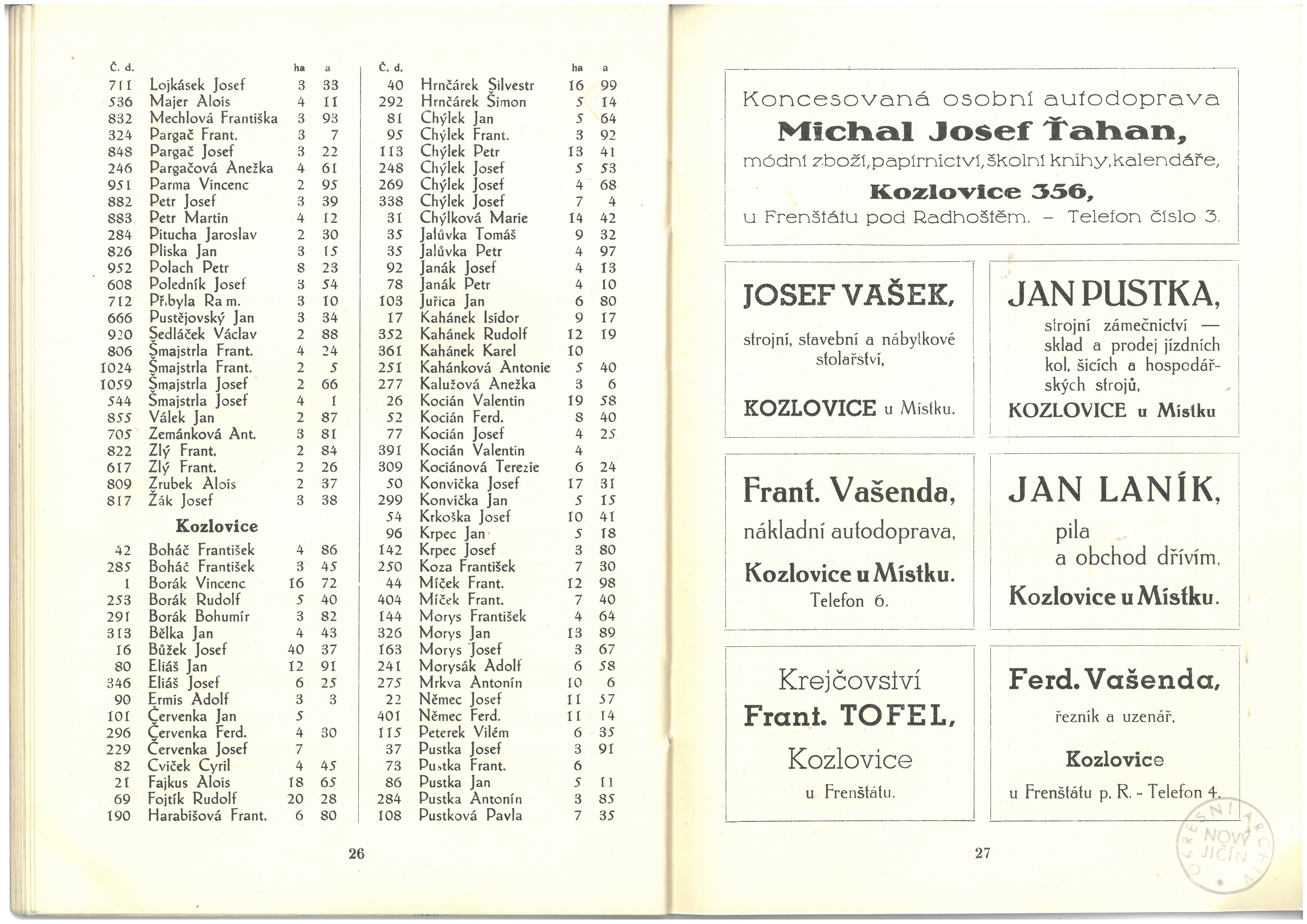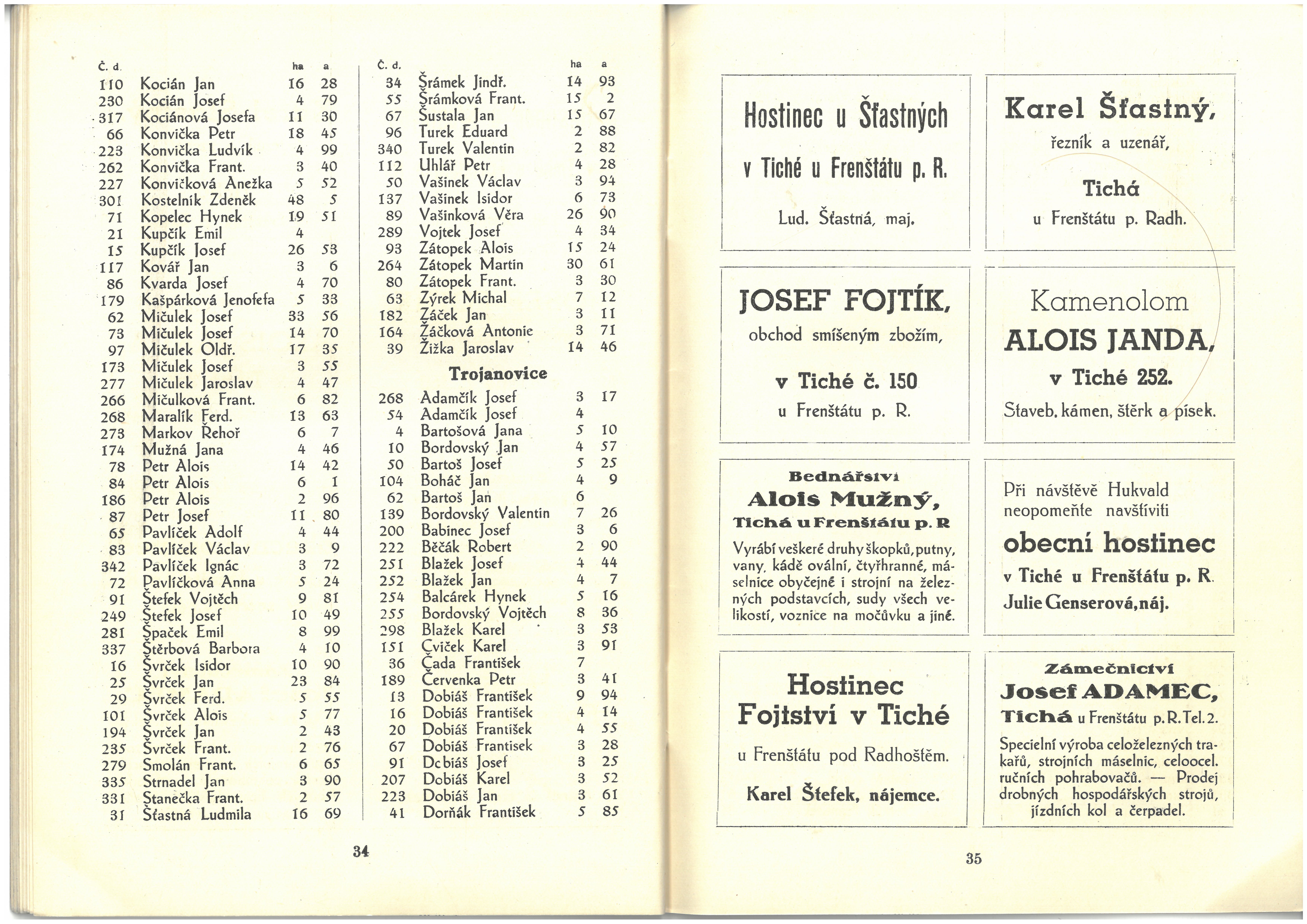 Informace živností, obchodu, průmyslu a zemědělců okresu frenštátského