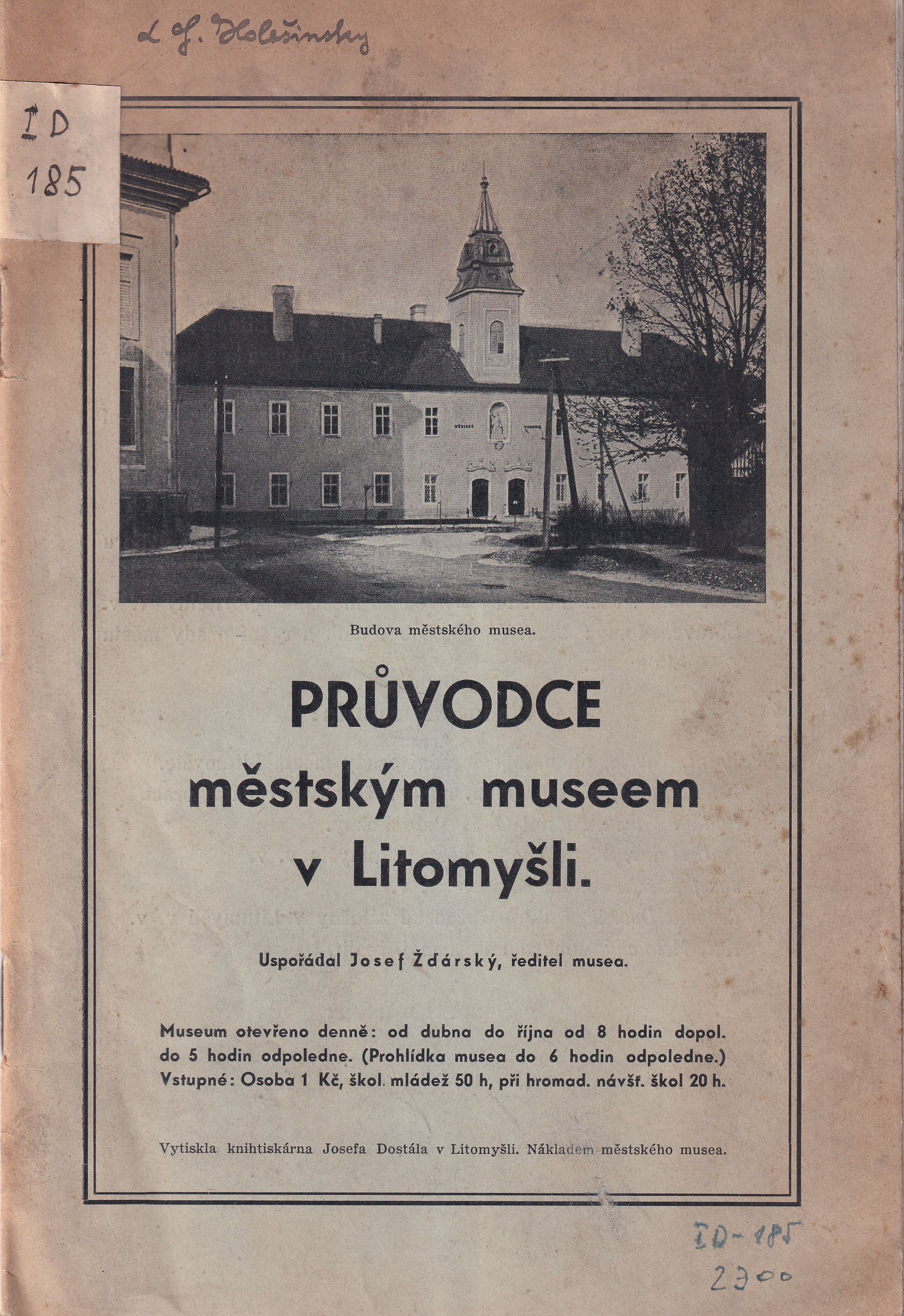 Main entry-name Žďárský, Josef Title statement Průvodce městským museem v Litomyšli Issue data Litomyšl : Městské museum Litomyšl : Knihtiskárna Josefa Dostála Language Czech Physical description 15 stran : ilustrace Subj. Headings muzea dějiny příroda památky muzejní sbírky Keywords Litomyšl Copy count 1, currently available 1 Document kind Booklet Call number Track No. Location Sublocation 8382 9848 Státní okresní archiv Bruntál